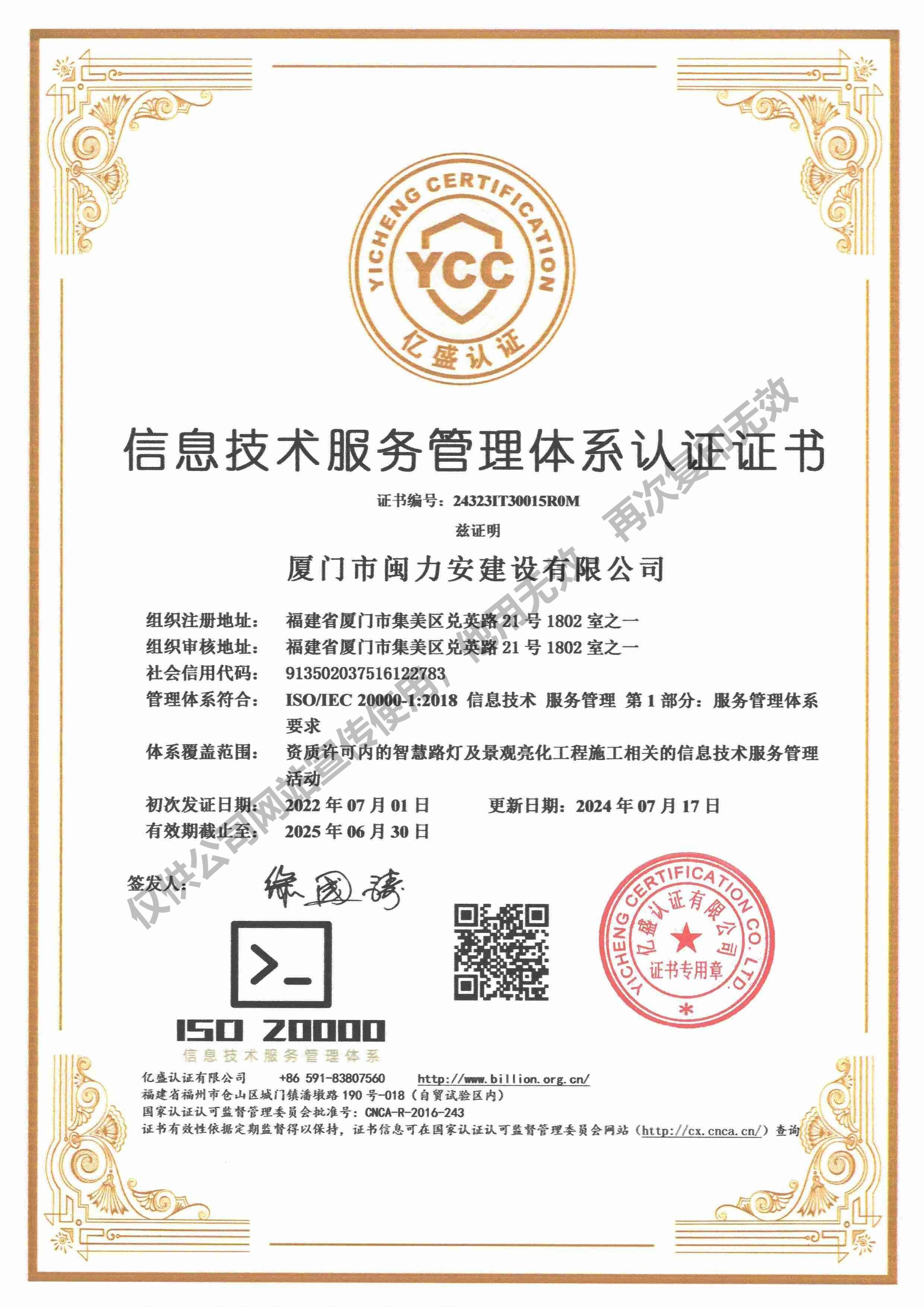 廈門市閩力安建設有限公司成立于2003年,公司取得市政公用工程施工總承包貳級、建筑裝修裝飾工程專業承包壹級、城市及道路照明工程專業承包壹級、電子與智能化工程專業承包貳級、消防設施工程專業承包貳級、電力工程施工總承包叁級、建筑機電安裝工程專業承包叁級、輸變電工程專業承包叁級、環保工程專業承包叁級、照明工程設計專項甲級、建筑裝飾工程設計乙級、施工勞務等資質的綜合型企業,公司于2013年通過了ISO9001質量體系認證,ISO14001環境管理體系認證,OHSAS18001職業健康安全管理體系認證。